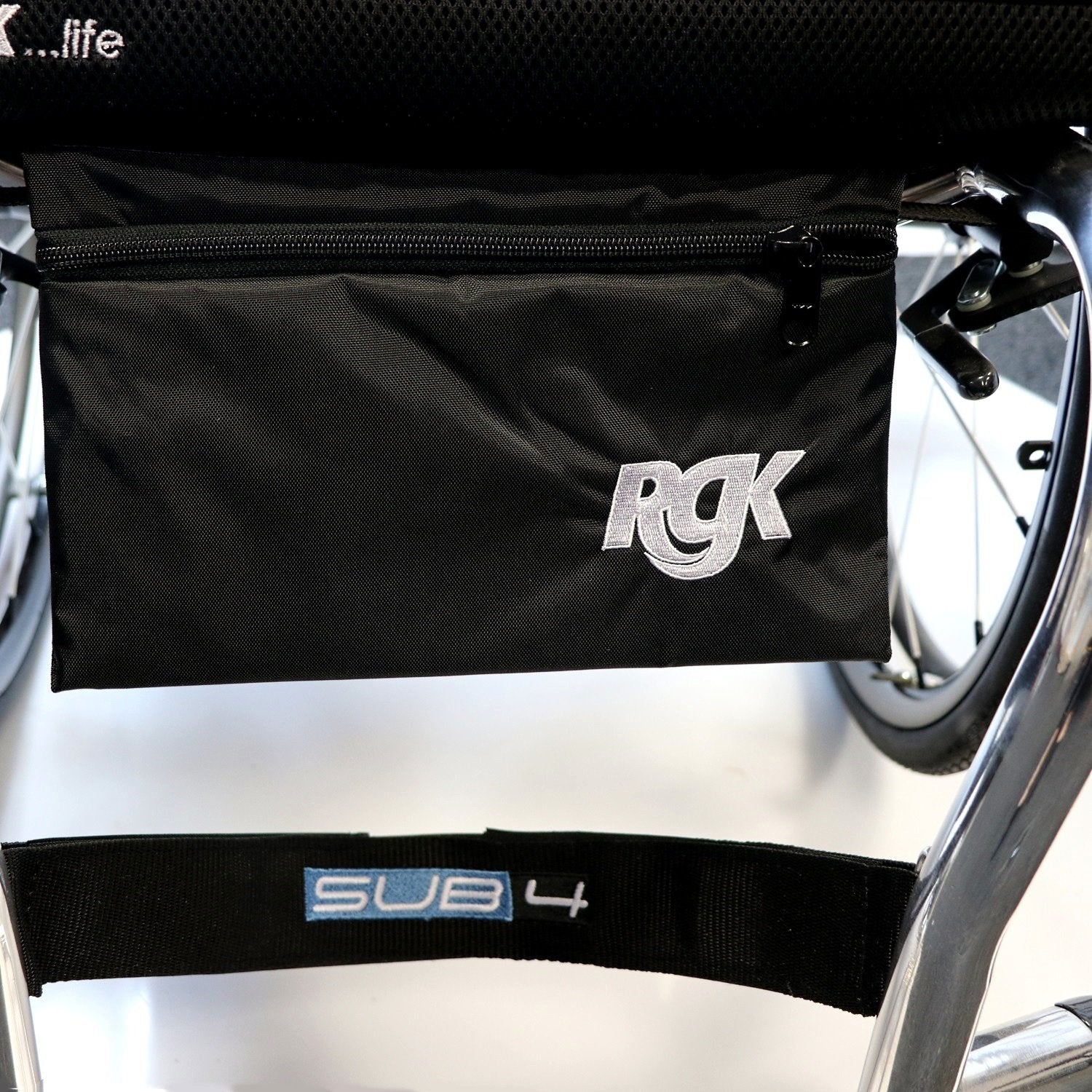 Buy your official RGK Wheelchair Seat Pouch w/ quick velcro attach! Exclusive RGK wheelchair swag and accessories here in the USA, only at How iRoll Sports! This small RGK zip-fastening pouch attaches neatly to underside of your wheelchair making it easy to reach for storing essentials. Perfect for carrying personal items such as mobile phone, purse or wallet.- Quick Velcro Attach / Detach