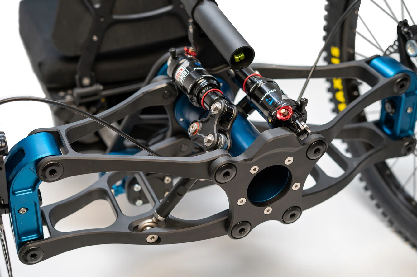 Designed for the hardcore adaptive sports athlete! The Bowhead Rogue is built for performance and durability for any level of rider on any terrain. The Rogue is a battery assist off-road handcycle that features full suspension and also sports the Bosch Performance CX eMTB motor! This model will grow with you which makes it great for a range of riders from kids (8+) to adults. With battery power assist, the Bowhead Rogue handcycle is the ultimate adaptive off-road e-bike! The Bowhead Rogue, your forever bike!