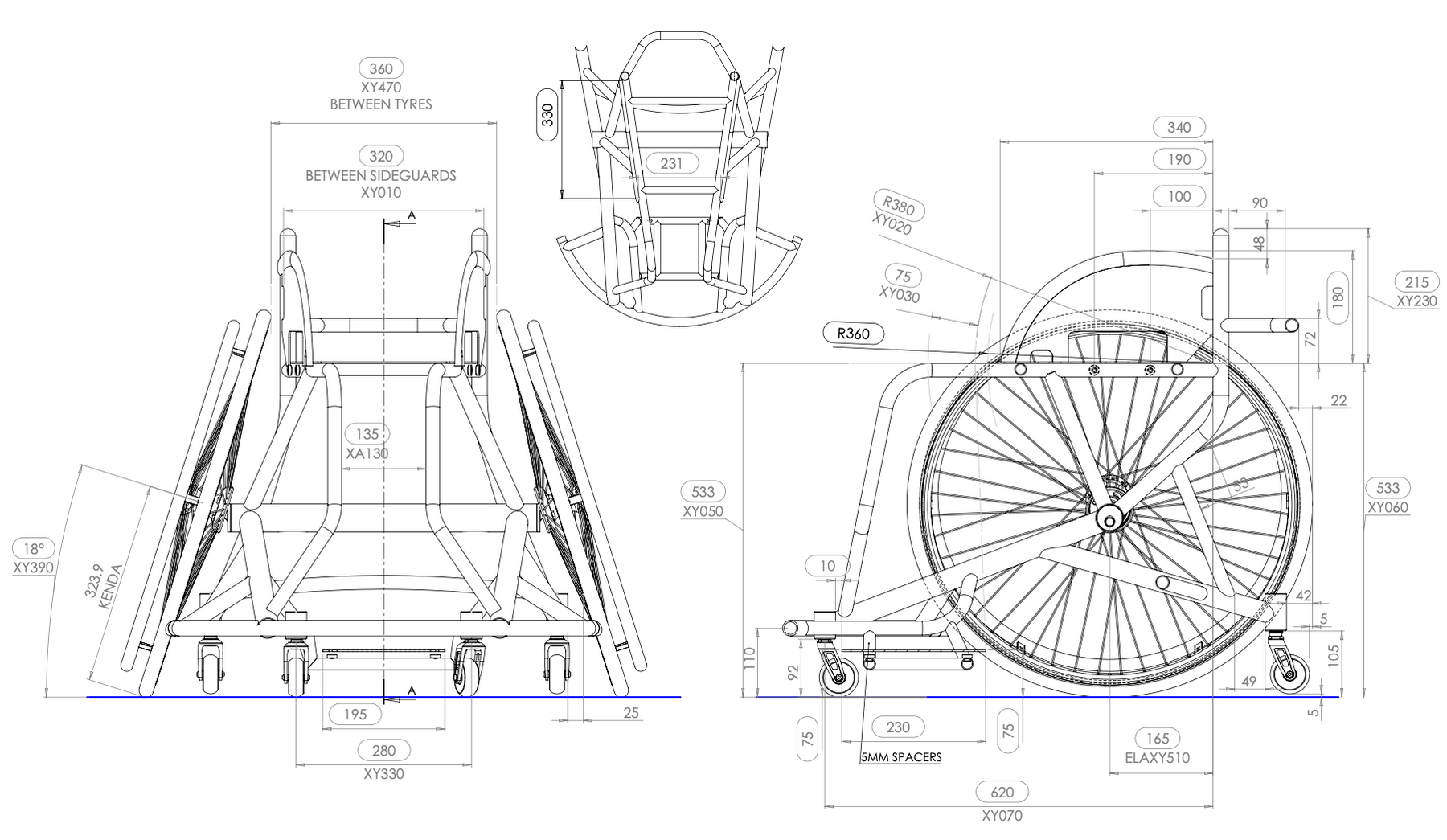 • Front Frame Taper: 135mm (5.3"), *Designed for a high single leg amputee