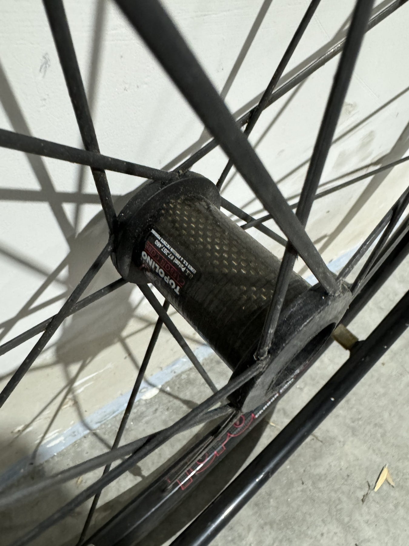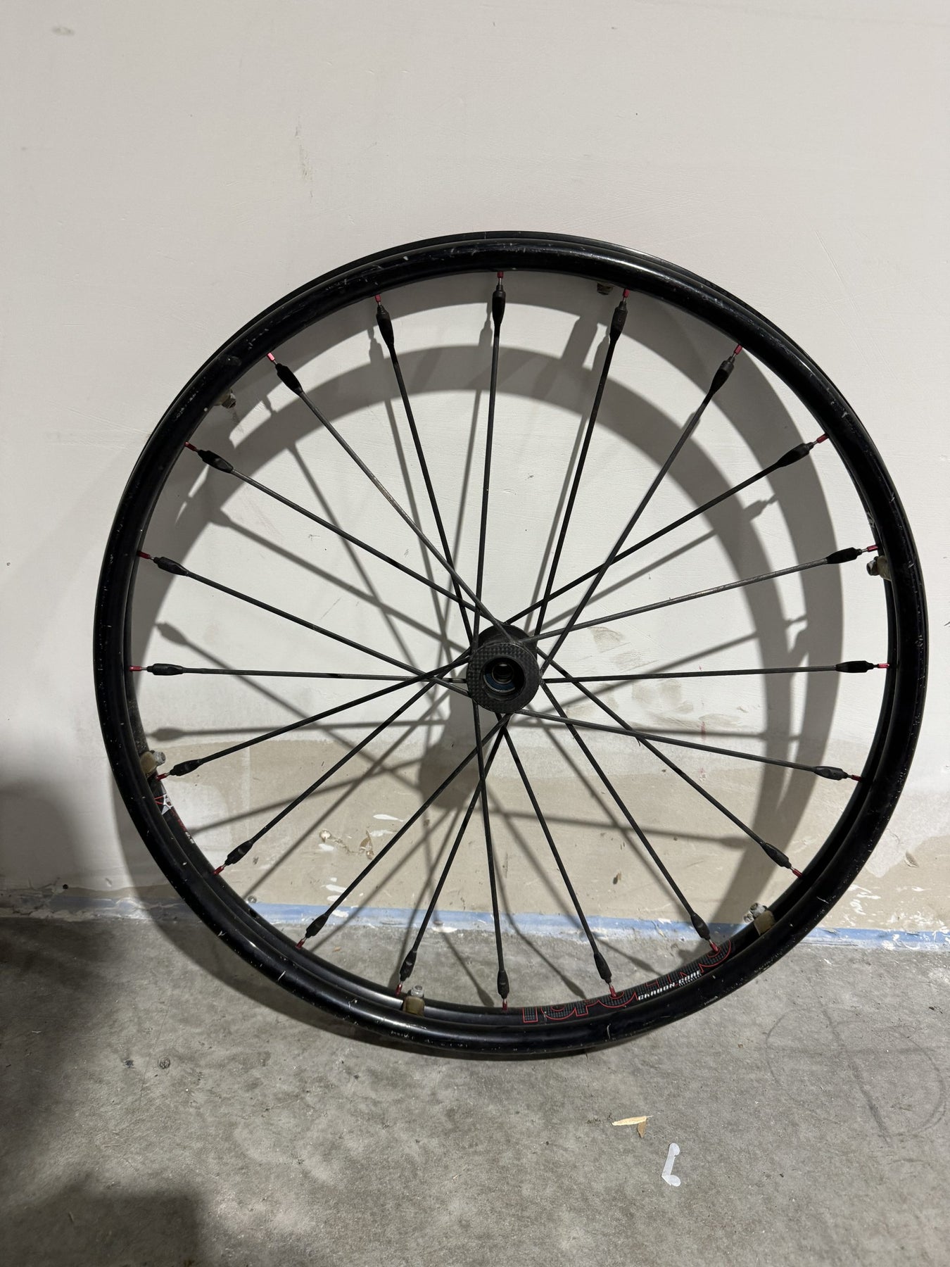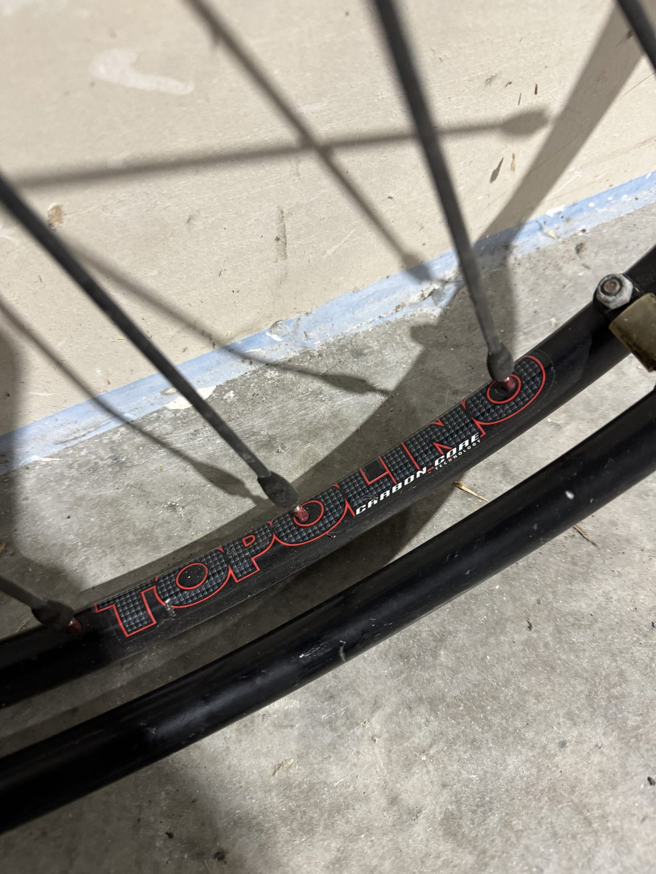 Topolino is a discontinued wheel.. We have 1 used 25" Topolino Carbon Fiber Rear Wheel in stock. This was officially the lightest weight rear wheel on the market, until they were discontinued years ago. The rim and hub are both carbon fiber, and the spokes are carbon fiber as well! This is a steal for the person looking for 1x replacement 25" (559) Topolino rear wheelchair wheel!