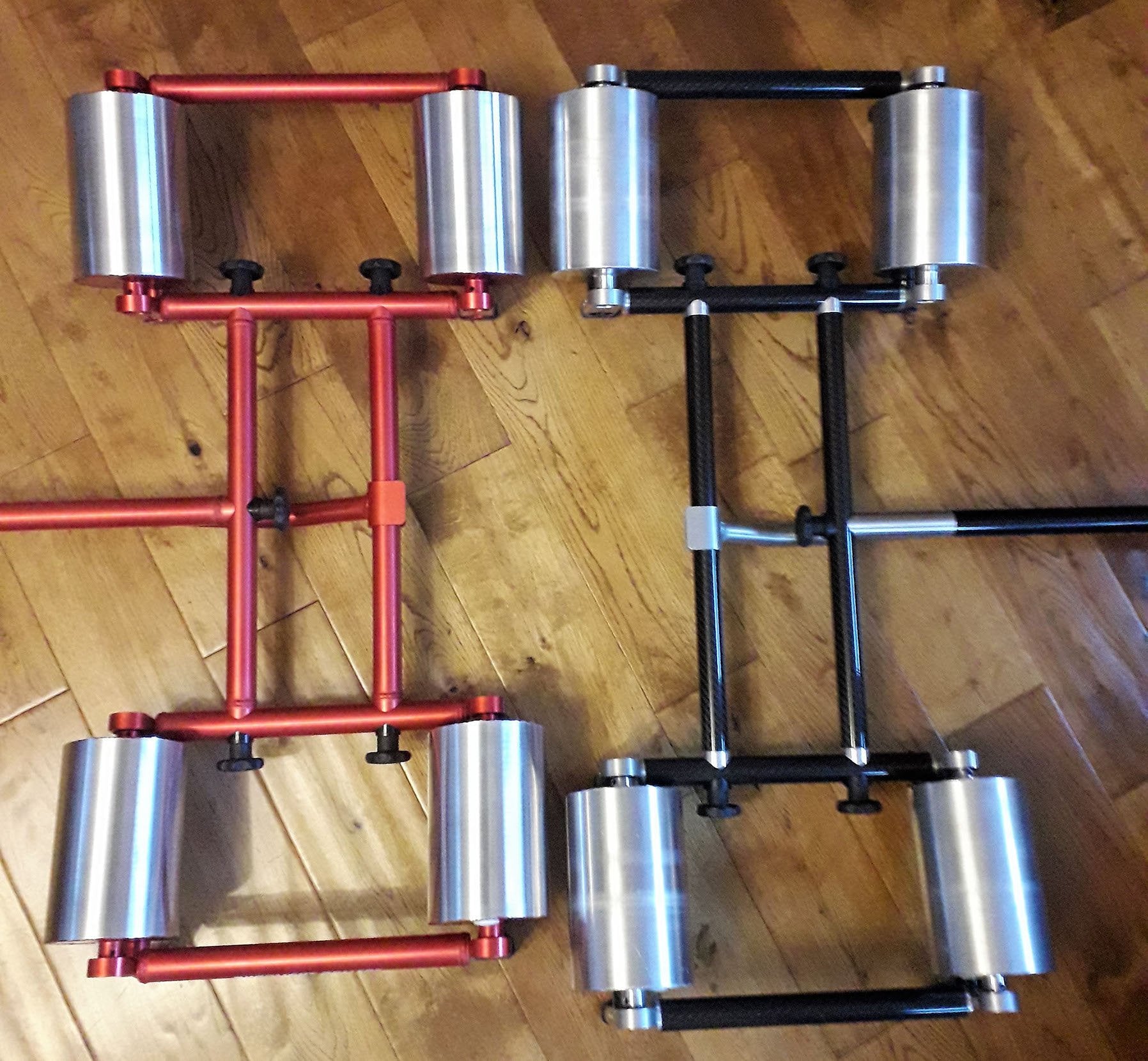 Portable training rollers were needed that would work effectively but be light enough to avoid airline excess baggage costs. For training rollers to work well they need to provide momentum to the wheels of the race chair.  The roller drums’ weight provides this momentum, so by their very nature training rollers tend to be heavy.  To resolve the weight versus momentum issue we incorporated fillable roller drums into our design. NOTE: Custom built per order.