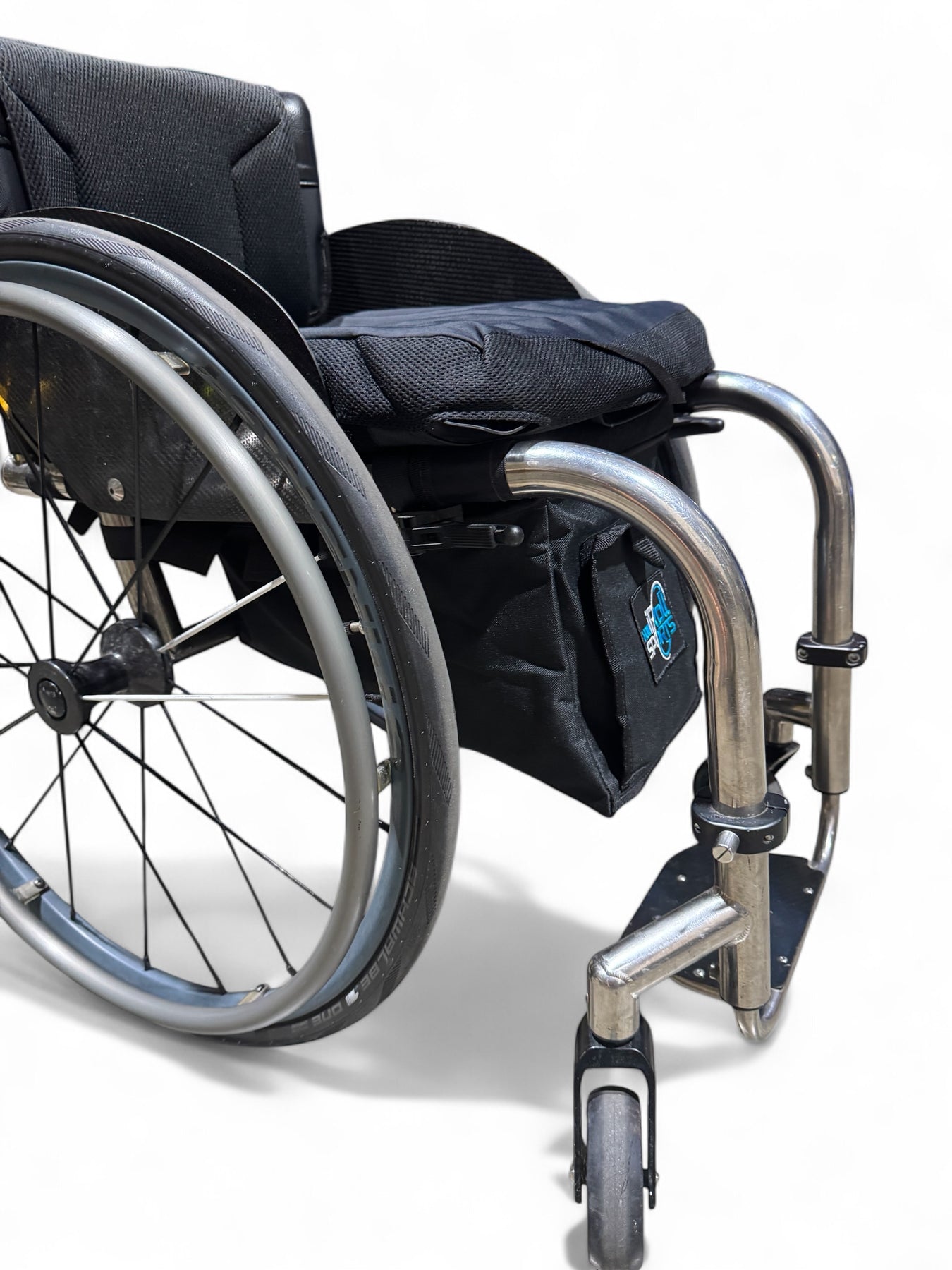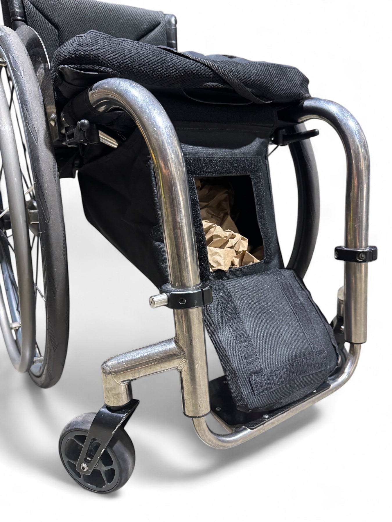 HiRS Under Seat Wheelchair Bag, Small - on wheelchair, sideview