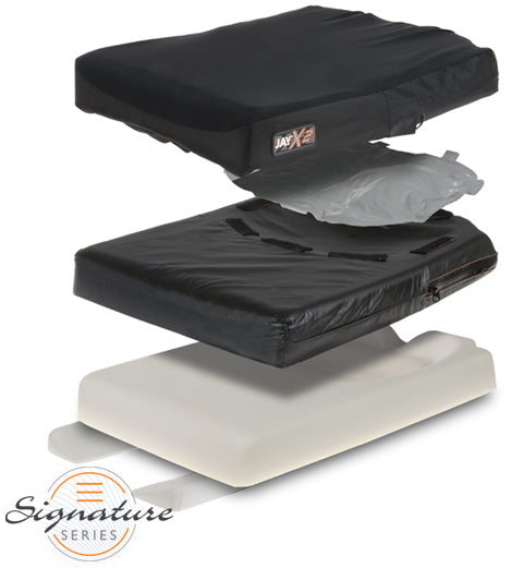 The JAY X2 Wheelchair Cushion is a lightweight, maintenance-free, fluid wheelchair cushion with a reduced profile that is designed to provide stability and pressure relief to active clients. Using elements from the JAY Xtreme and Active cushions, the X2 combines JAY’s time-tested designs with its latest technologies.