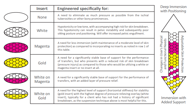 Supracor Adjustable Contoured Cushion - Insert Chart