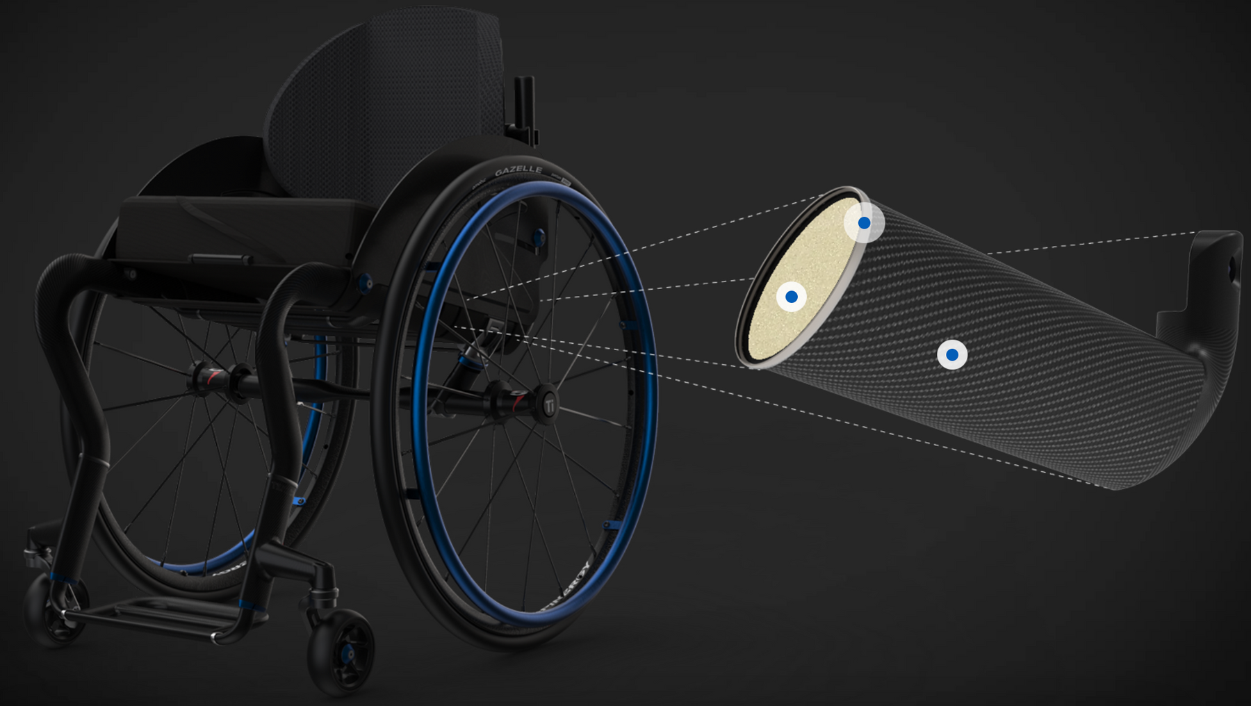 Every single detail of the TiLite CR1 carbon fiber wheelchair has been carefully designed to bring true innovation to TiLite. From specially designed caster bearings for vertical load application and weight reduction to new carbon fiber caster wheels and titanium reinforcement trim rings, this chair revolutionizes the idea of a manual wheelchair from the ground up.