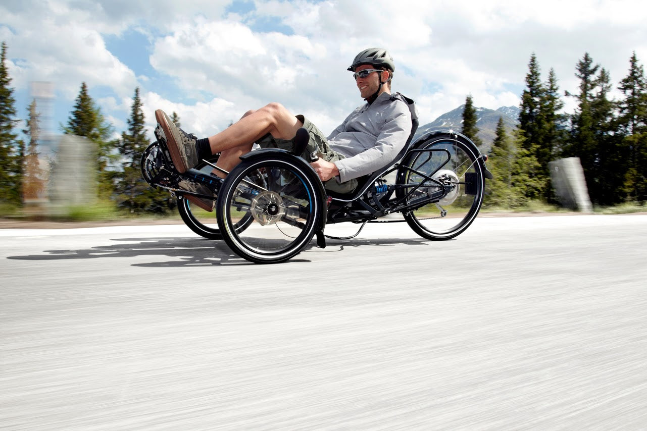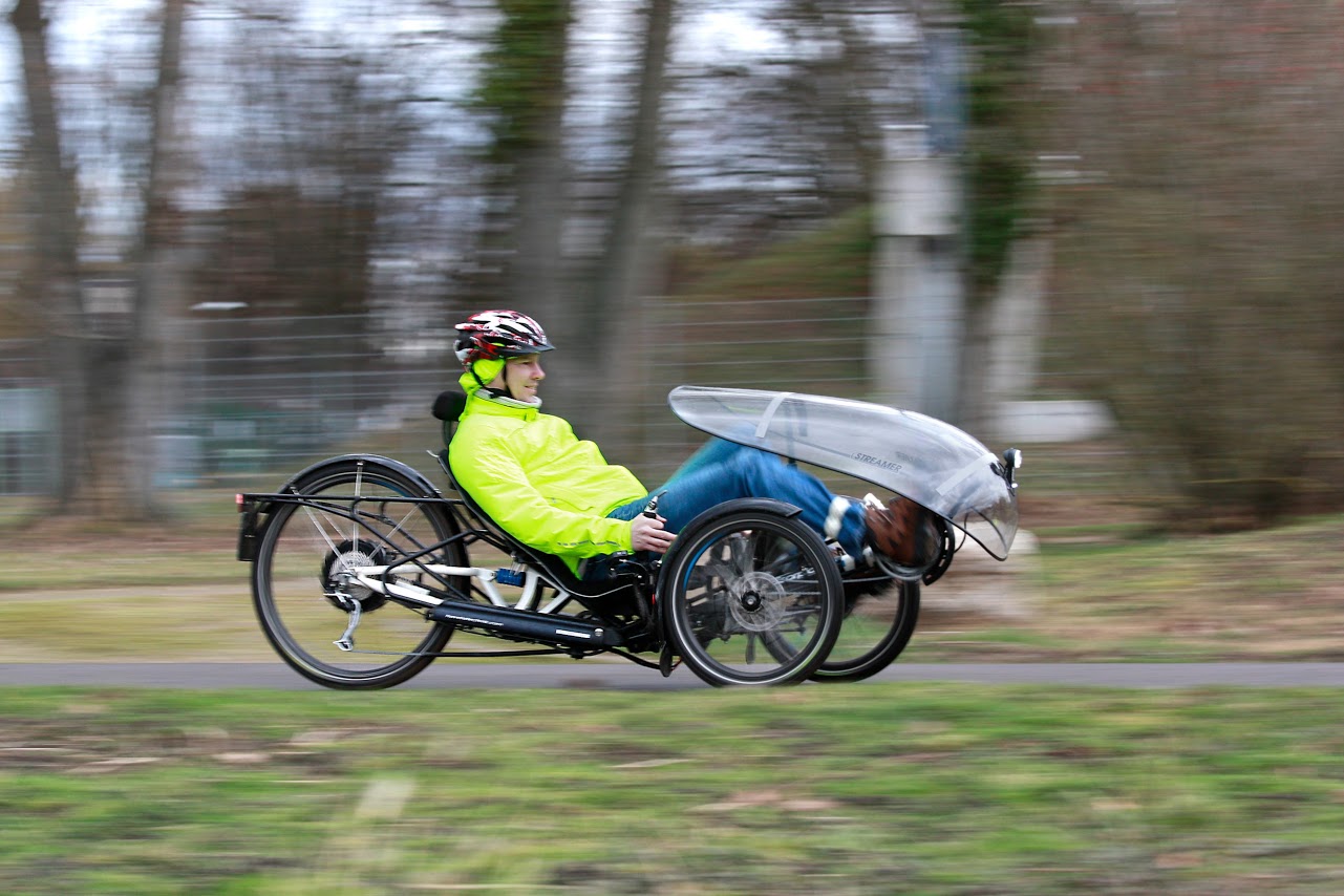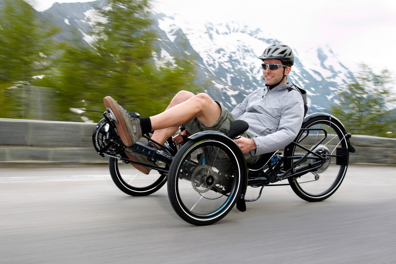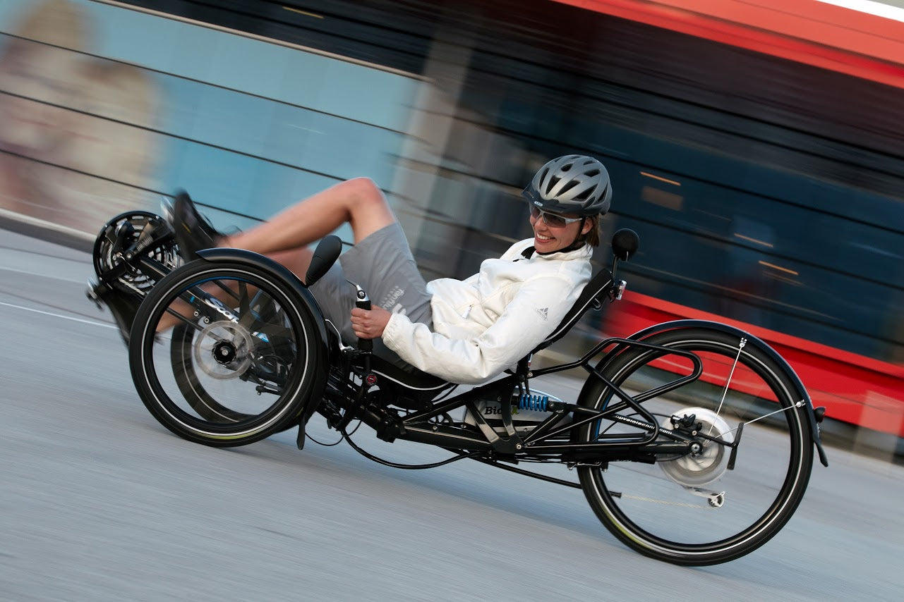 A 3-wheel rocket ship... The HP Velotechnik Scorpion fs 26 S-Pedelec is the perfect vehicle for powerful motorization and high average speeds of over 25 km/h.