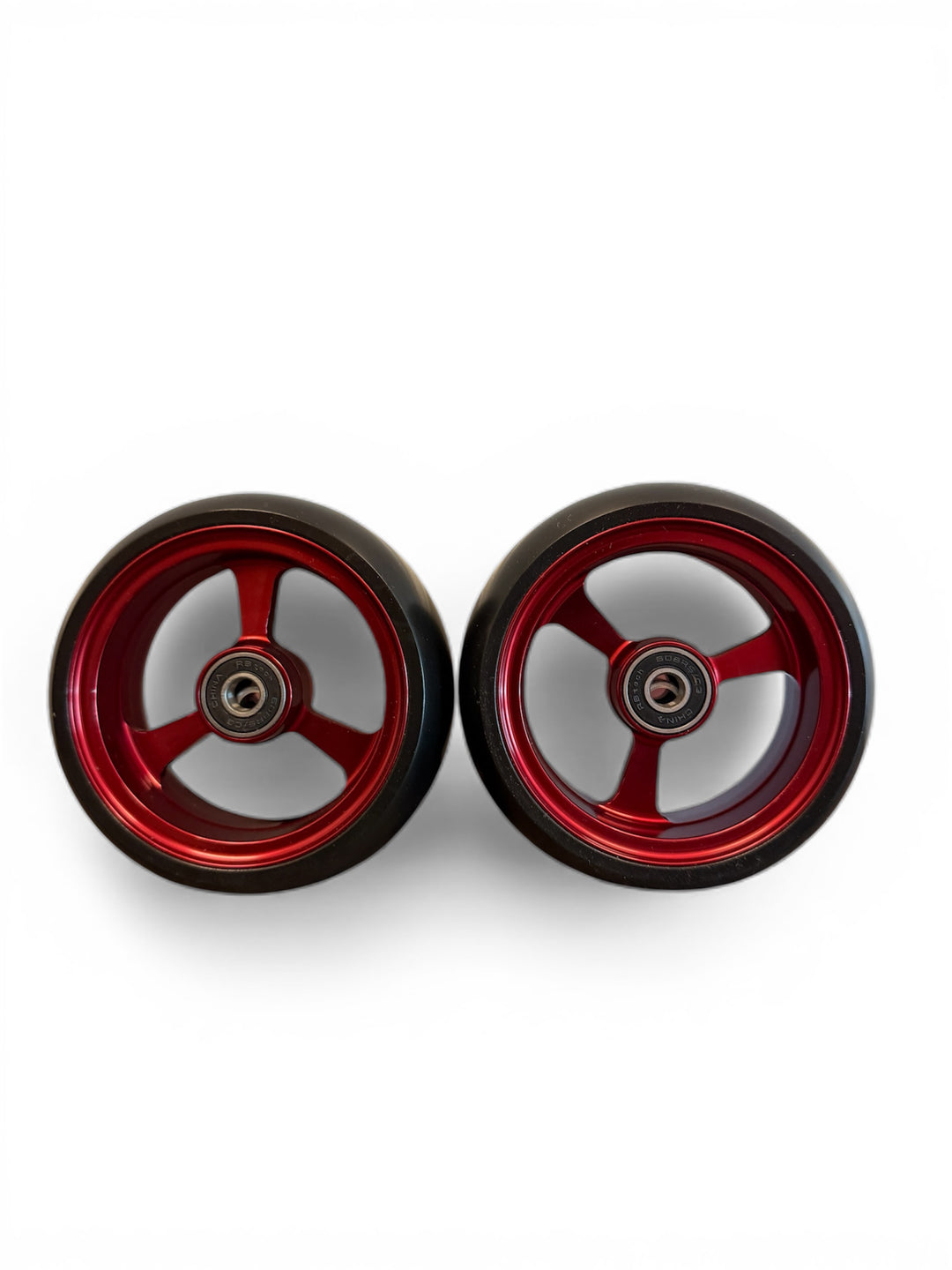 Frog Legs 4" x 1.4" Wide Softroll Casters (pair)- Red Anodized - Ready To Ship!