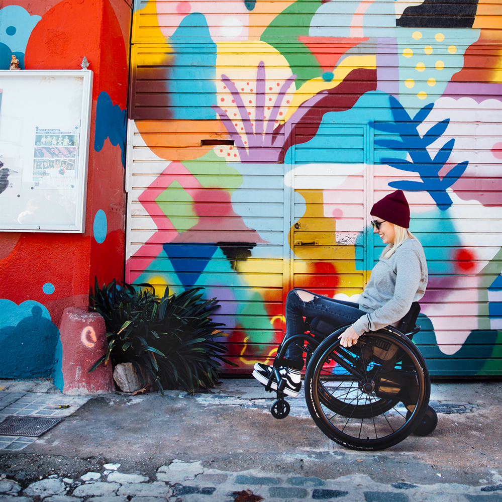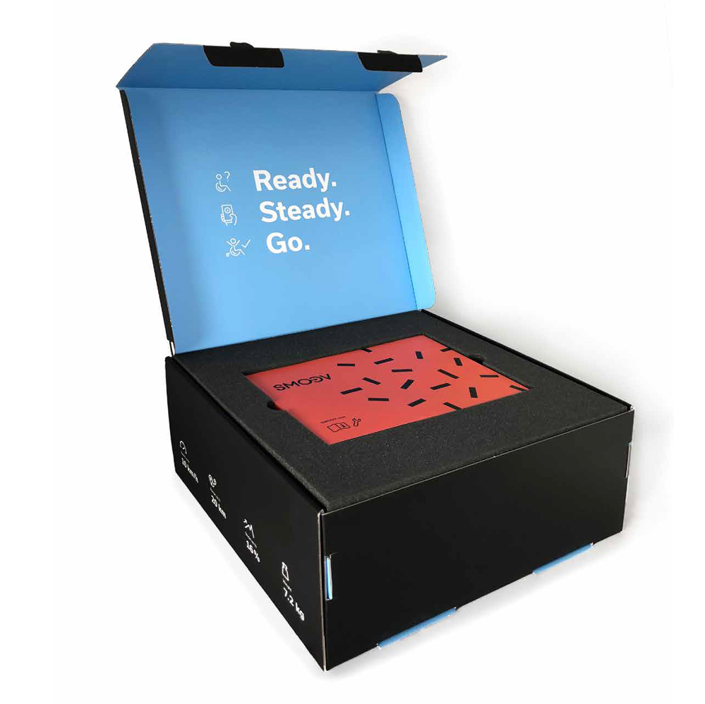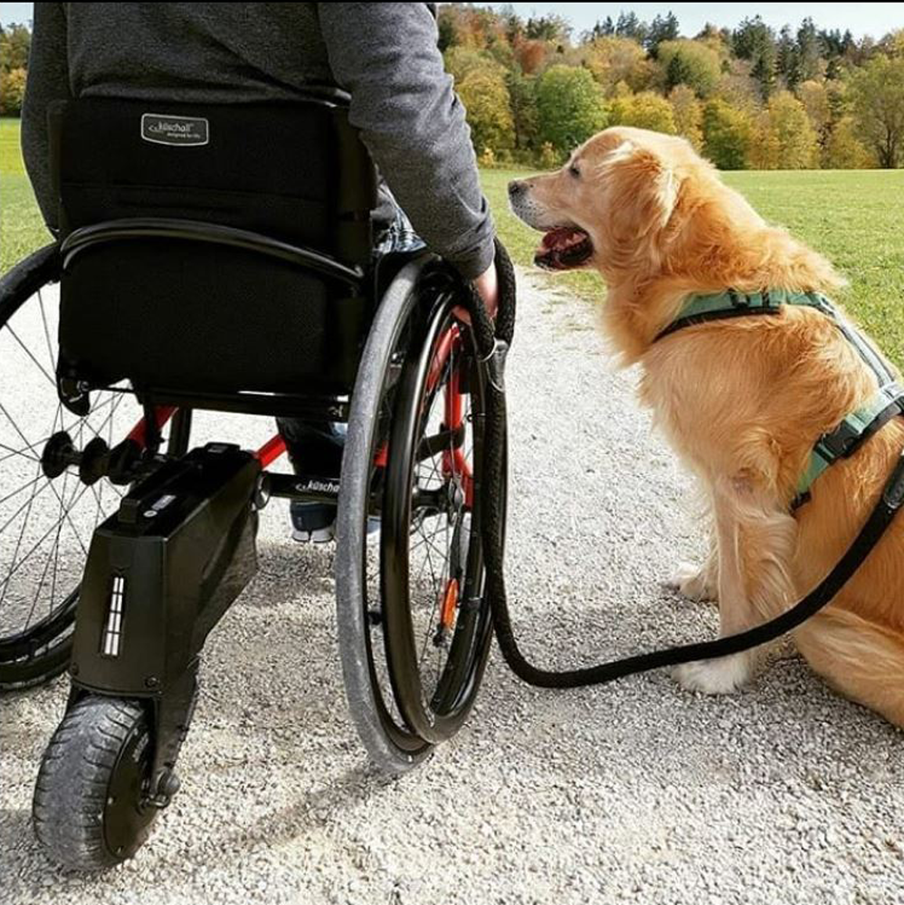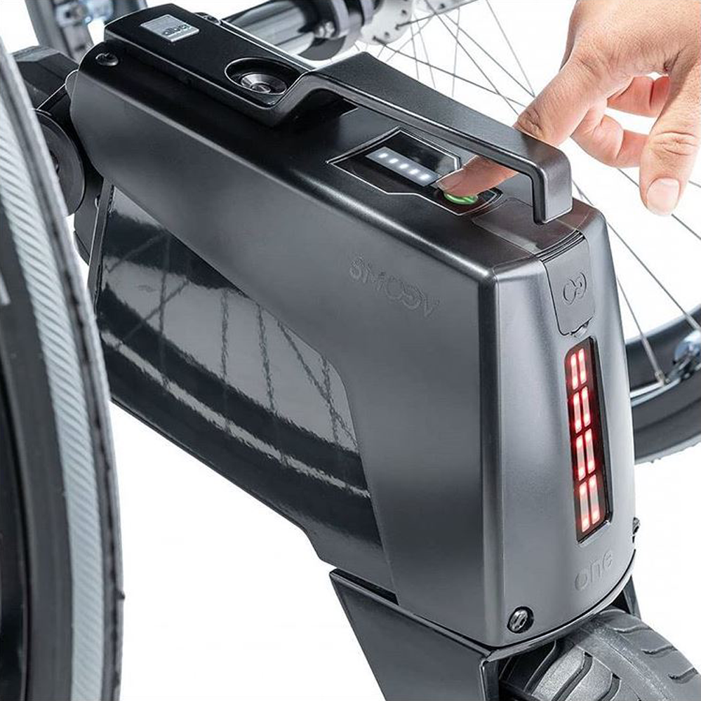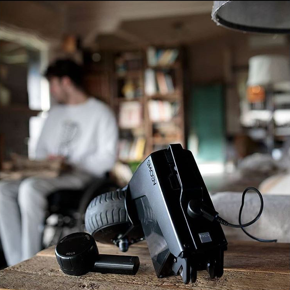 Assistive wheelchair power anytime you need it! The SMOOV One is an innovative electric drive that you can easily dock on to and off your wheelchair whenever you need some extra power. This modern and sporty power unit significantly increases the driver’s mobility. The power assist can be easily mounted or removed. A carrying handle helps you steady the SMOOV one while you attach or detach the unit to your wheelchair. A locking claw securely locks the SMOOV one to your wheelchair, whether you have a rigid or folding frame wheelchair without any fear of disconnecting. Attachment is so easy you can do it even while sitting in your rigid frame wheelchair. The SMOOV one can also easily attach to a folding frame wheelchair. The SMOOV one connects to the rear axles of a folding frame wheelchair with a removable axle adapter.