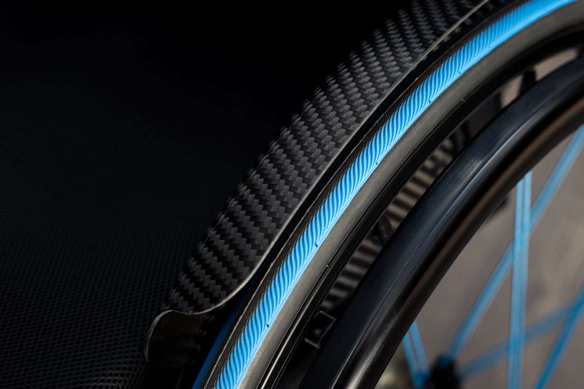 For Wheelchair users with complete hand function and either complete or limited hand strength. Grippy handrim strip, similar to Out-Front Surge. The CarboLife Gekko grippy strip is replaceable!